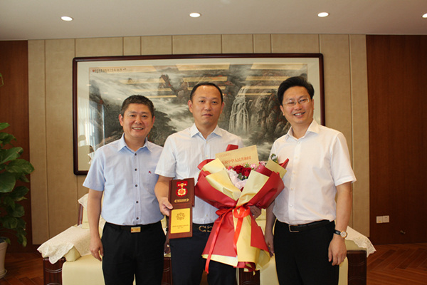 值此新中國(guó)成立七十周年來(lái)臨之際,錫山區(qū)委副書記、統(tǒng)戰(zhàn)部長(zhǎng)言國(guó)強(qiáng)于9月24日上午來(lái)到公司走訪慰問(wèn)了全國(guó)勞動(dòng)模范、總經(jīng)理王英明。在慰問(wèn)過(guò)程中,言書記與王總進(jìn)行了親切的交談,認(rèn)真關(guān)心詢問(wèn)了他的工作、生活、學(xué)習(xí)情況,傳達(dá)了區(qū)委、區(qū)政府對(duì)勞模節(jié)日的親切問(wèn)候。同時(shí),在錫山區(qū)總工會(huì)方主席的陪同下,言書記還向王總頒發(fā)了由中共中央、國(guó)務(wù)院、中央軍委授予的“慶祝中華人民共和國(guó)成立70周年”紀(jì)念章,并送上美麗的鮮花和市委、市政府發(fā)放的勞模慰問(wèn)金。王總表示,作為勞模能夠獲此殊榮,是黨和國(guó)家人民對(duì)他的厚愛(ài)。在今后的工作中,他要以自己的實(shí)際行動(dòng)把勞模精神、工匠精神發(fā)揚(yáng)傳承下去,為錫山的建設(shè)事業(yè)發(fā)揮更大的作用。